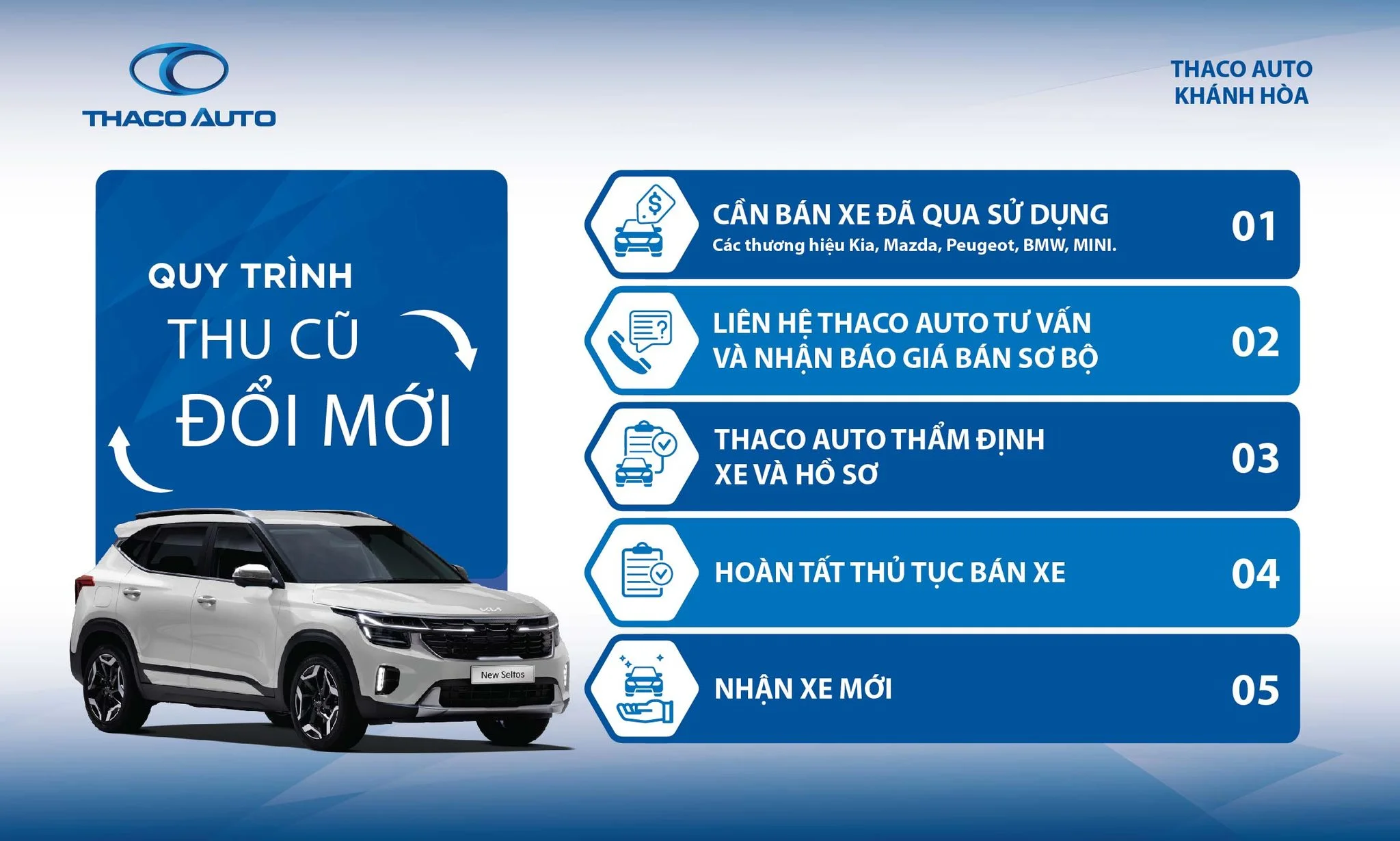 Đang có nhu cầu bán xe cũ nhưng chưa biết bắt đầu từ đâu? Đừng lo, tại THACO AUTO KHÁNH HÒA với thủ tục đơn giản - quy trình nhanh chóng, tối ưu quyền lợi cho khách hàng, giúp việc bán xe trở nên thuận tiện và dễ dàng hơn
